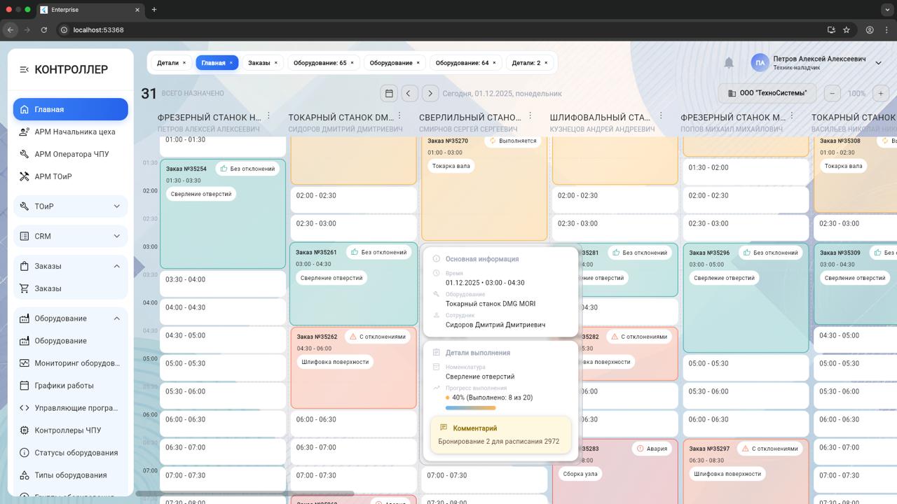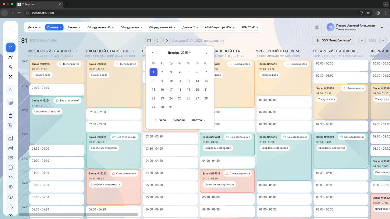 - Слепота данных: Нет информации о фактической загрузке (OEE) оборудования.